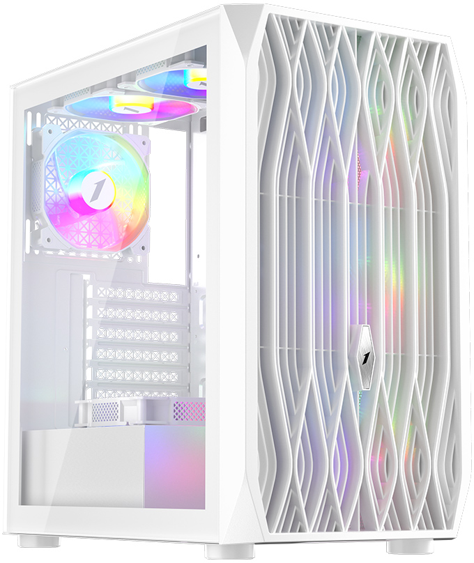 ATX, USB 3.0, USB 2.0, 4x 120mm RGB Fan, сбоку закаленное стекло спереди сетка, белый