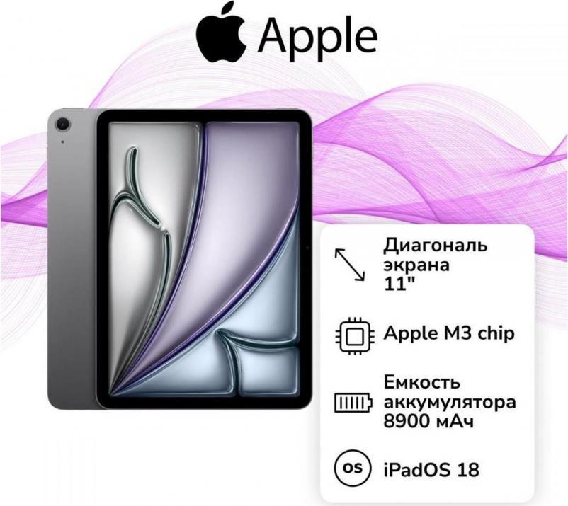 Apple iPad Air (2025) 11" 128Gb, Space Gray открывает новые возможности для работы и развлечений благодаря мощному процессору Apple M3 на 8 ядрах с частотой 4.05 ГГц, выполненному по 3 нм техпроцессу. Высокая производительность обеспечивает плавную работу всех задач – будь то серфинг, потоковое видео, сложные графические приложения или многозадачность с разделением экрана. Благодаря 128 Гб встроенной памяти удобно хранить большой объём фото, видео, учебных материалов и важных файлов, а быстродействие внутреннего накопителя раскрывается на полную с iOS 18 и актуальным графическим ускорителем Apple GPU.
