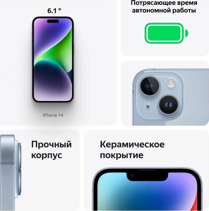 Смартфон Apple iPhone 14 256Gb, Midnight — это сочетание элегантного дизайна и мощной функциональности, способное удовлетворить потребности самых требовательных пользователей. Выполненный в стильном черном корпусе, он станет не только надежным помощником в повседневной жизни, но и стильным аксессуаром.