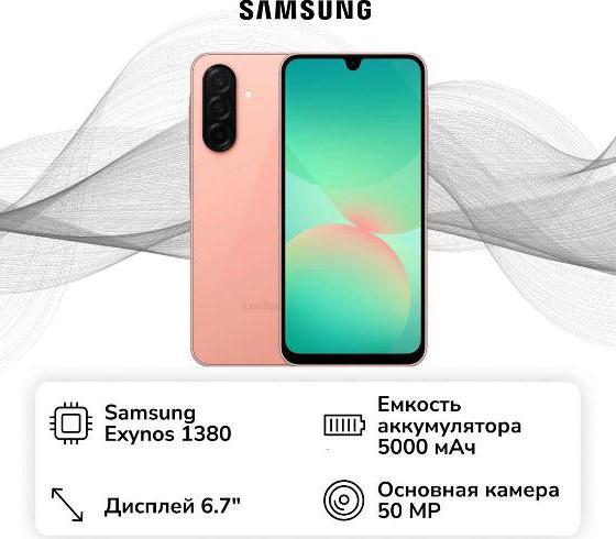 Samsung Galaxy A26 6/128Gb в элегантном оттенке Peach Pink — это не просто смартфон, а стильный и мощный инструмент для решения повседневных задач. Каждый элемент этого устройства подчеркивает его современность и инновационность. В основе аппарата лежит восьмиядерный процессор Samsung Exynos 1380, который обеспечивает высокую производительность и плавную работу даже при запуске ресурсоемких приложений и игр. С 6 Гб оперативной п...
